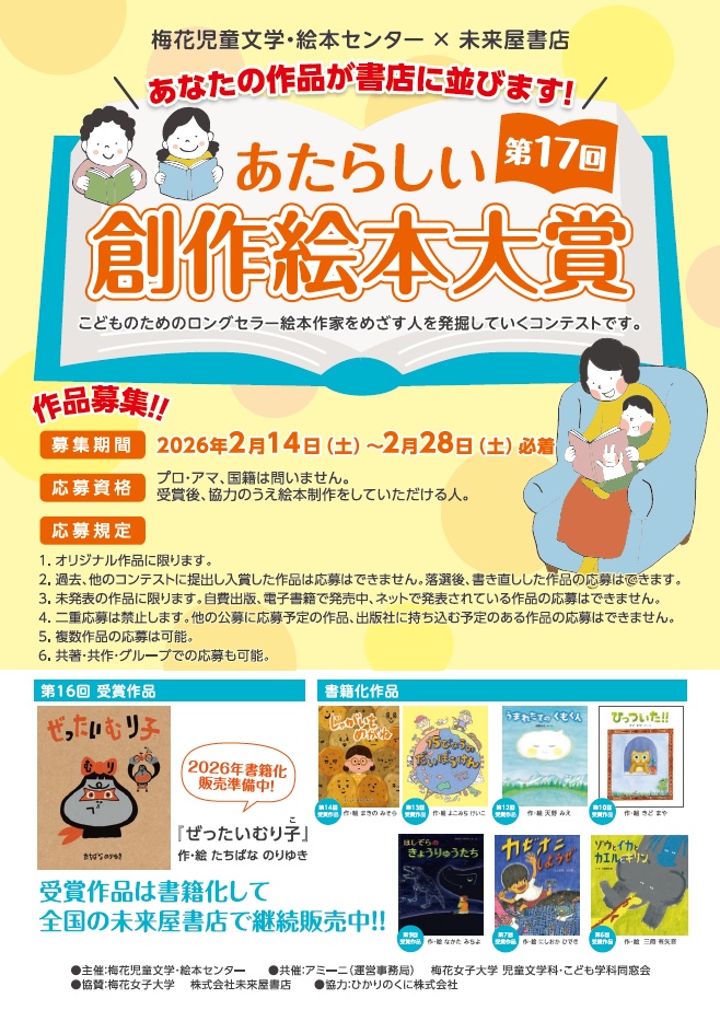 大賞作品は、未来屋書店にて絵本出版化。入選作品でも出版の可能性はあります。